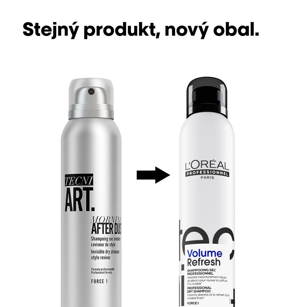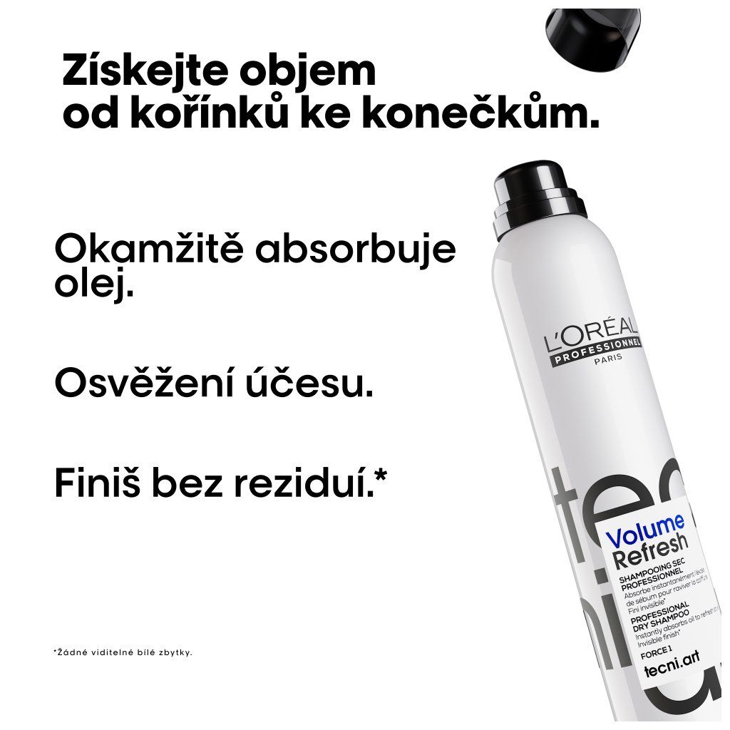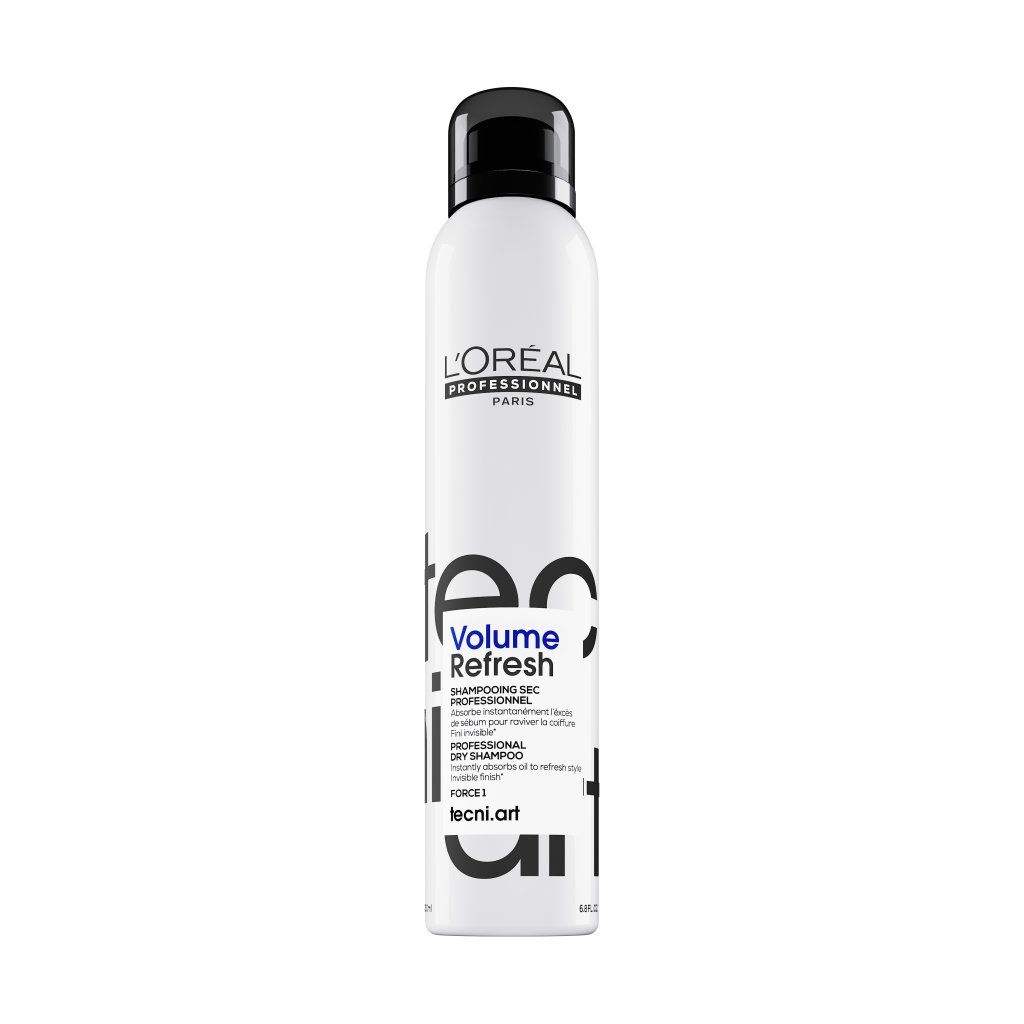L’Oréal Professionnel tecni.art Volume Refresh. Profesionální suchý šampon pro nemyté vlasy. Obohacený o složky nadzdvihávající vlasy od kořínků, okamžitě obnovuje styling, pohlcuje mastnotu a podporuje objem bez nánosu.